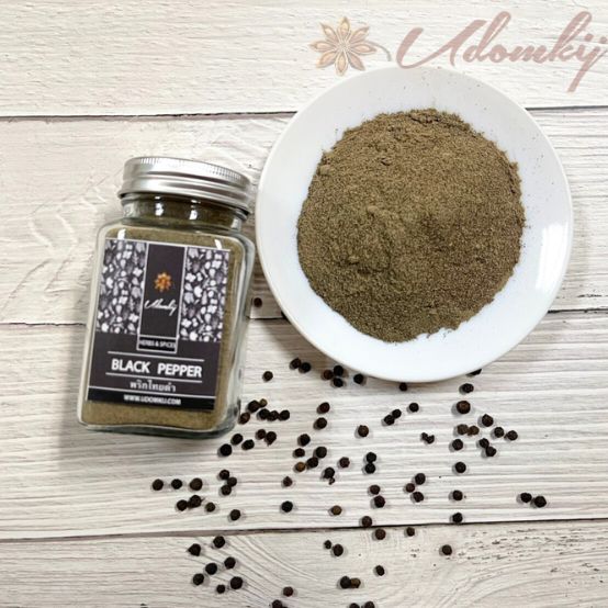 พริกไทยดำป่น 100% ผลิตด้วยเครื่องจักรที่ทันสมัย สะอาด ถูกหลักอนามัย ตามมาตรฐาน GHPs, HACCP, FSSC22000 และ HALAL จำหน่ายทั้งปลีก - ส่ง - รับจ้างผลิต (OEM) ให้คุณได้เลือกตามความต้องการ