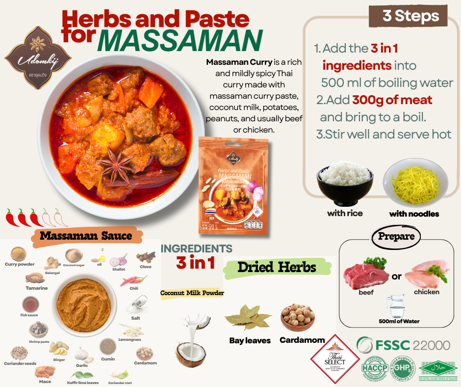 ชุดปรุงแกงมัสมั่น “ ซองเดียวอร่อยครบเครื่อง ” ทำง่าย สะดวก ไม่ยุ่งยาก Just add water& meat ready in 10 mins!